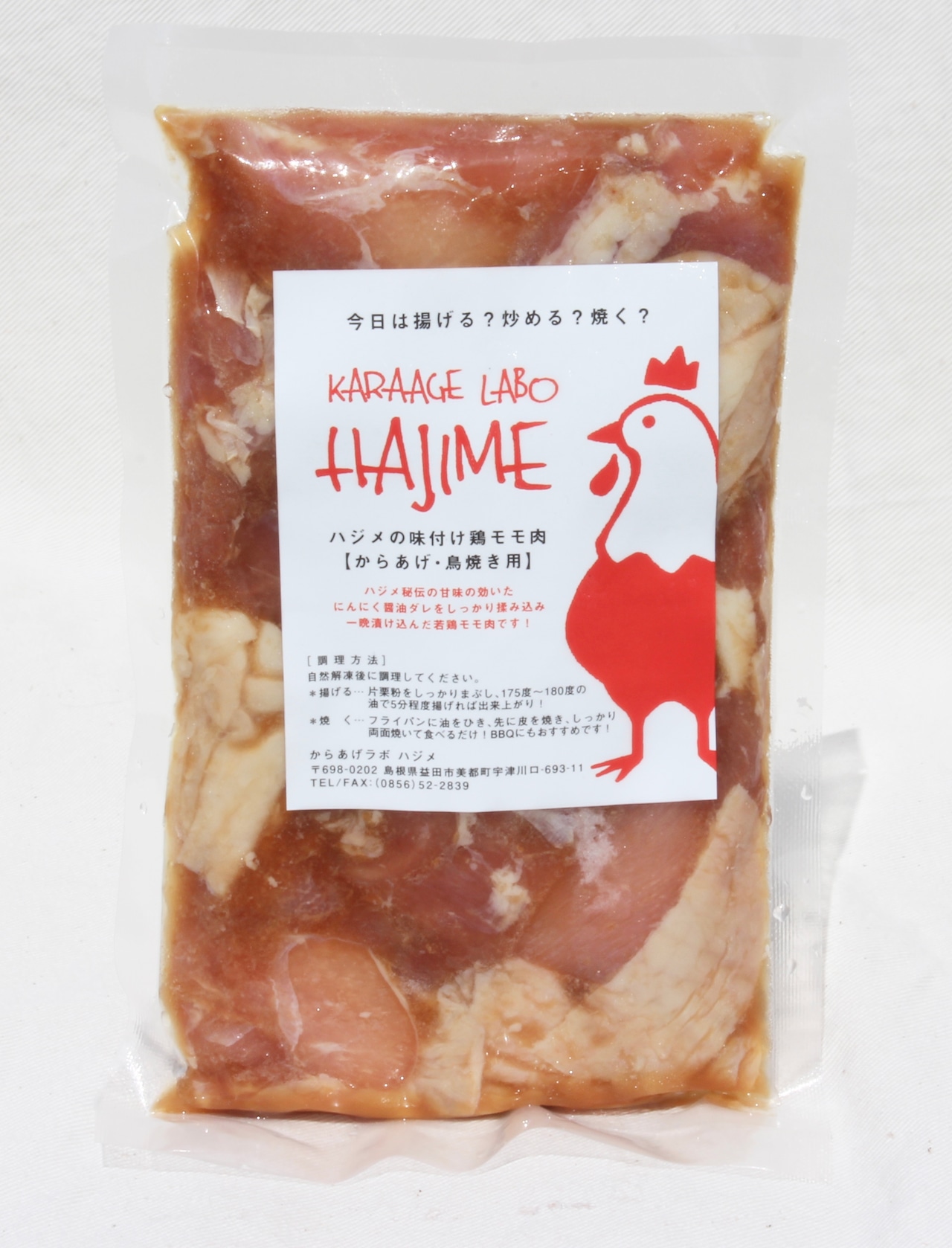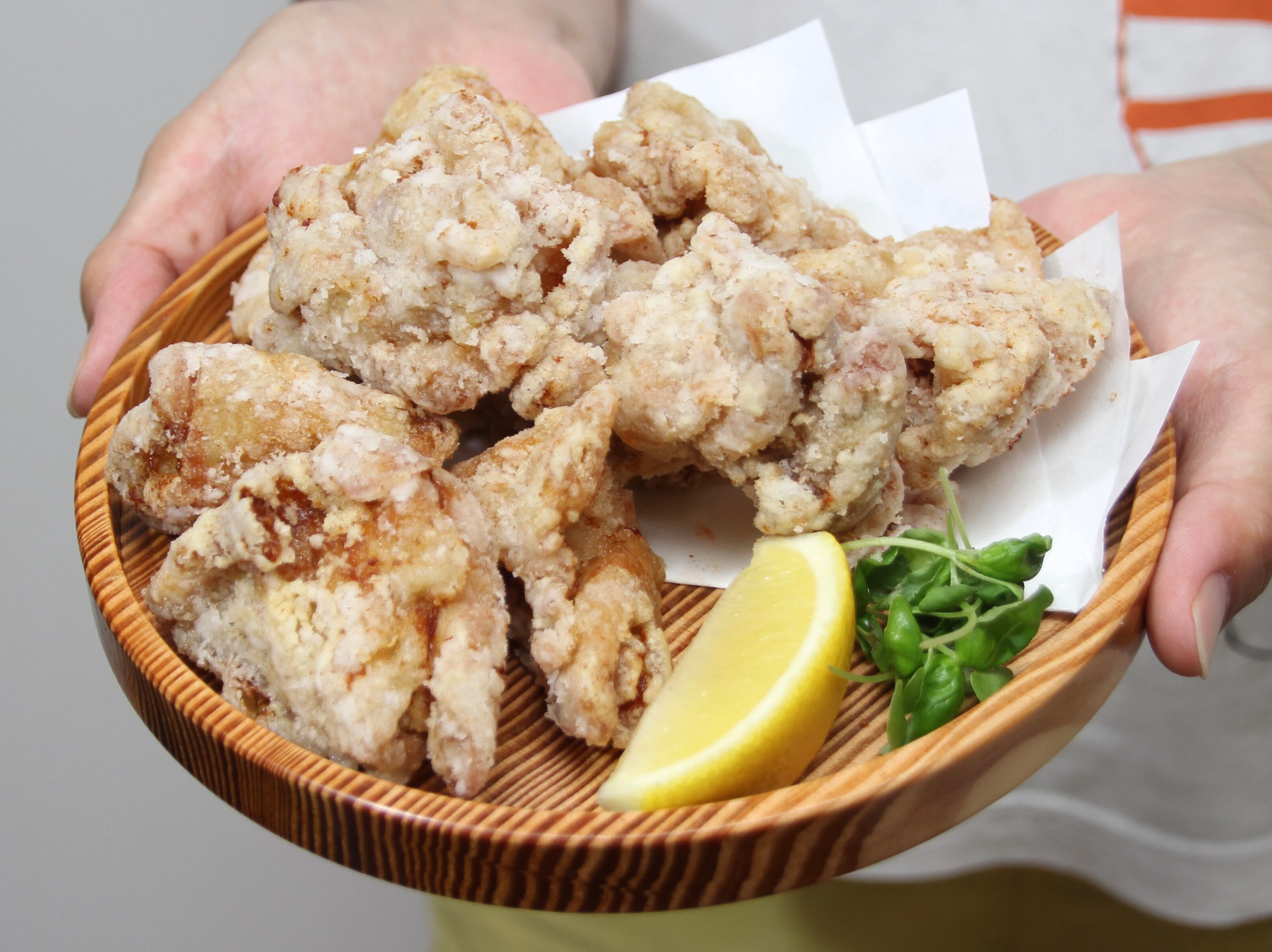 解凍後は片栗粉をまぶして揚げて頂くだけでハジメのからあげがご自宅でお召し上がりいただけます。